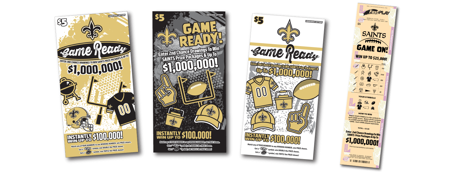 Get Game Ready with Louisiana Lottery and the New Orleans Saints! Play for your chance to score major cash and second-chance prizes. Plus, a shot at up to $1 million.