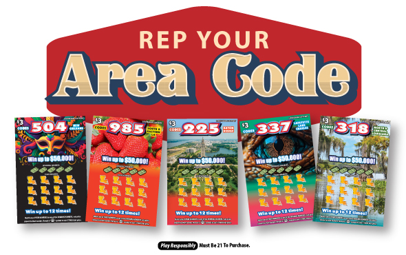 Every corner of Louisiana has its own flavor – and now, its own ticket! The limited-edition $3 Area Codes scratch-offs celebrates the pride, people, and places that make our state one of a kind. From 225 to 504, there’s a ticket for everyone! Try your luck and see how you can rep your area code.
