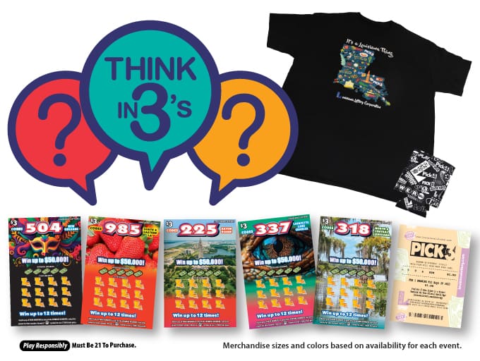 Feeling lucky? Pick up three $3 Area Codes scratch-offs and one $1 Pick 3 ticket to score an “It’s a Louisiana Thing!” T-shirt and koozie while supplies last. Just our way of saying thanks for keeping it local.