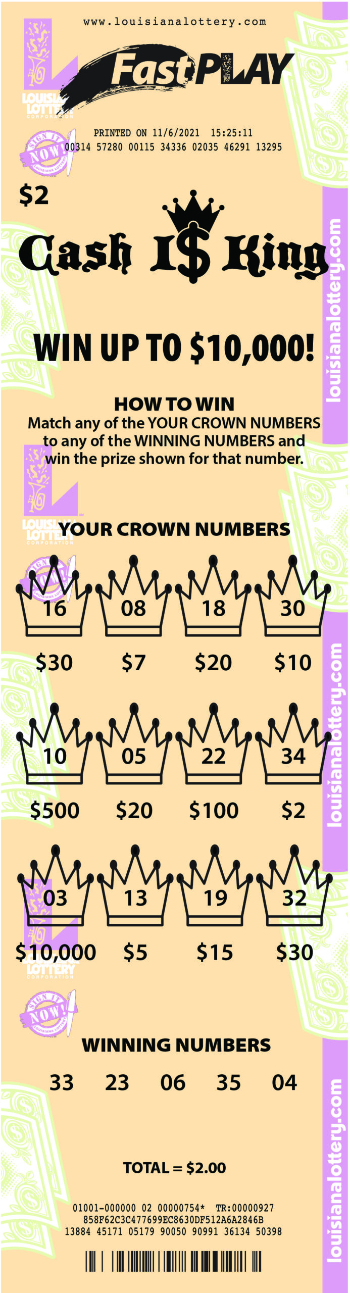 Every effort has been made to ensure that the preceding list of prize payouts, odds, and other game information provided on this page is correct. However, in the event of an error, the official files of the Louisiana Lottery shall be controlling. |