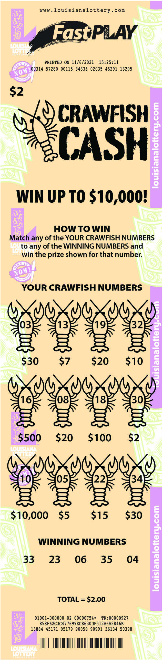 Match any of the YOUR CRAWFISH NUMBERS to any of the WINNING NUMBERS and win the prize shown for that number.
