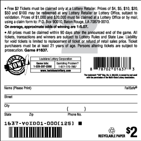 Every effort has been made to ensure that the preceding list of prize payouts, odds, and other game information provided on this page is correct. However, in the event of an error, the official files of the Louisiana Lottery shall be controlling. |