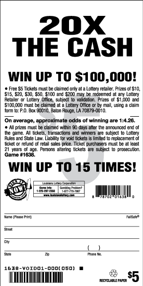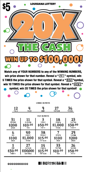 Every effort has been made to ensure that the preceding list of prize payouts, odds, and other game information provided on this page is correct. However, in the event of an error, the official files of the Louisiana Lottery shall be controlling. |