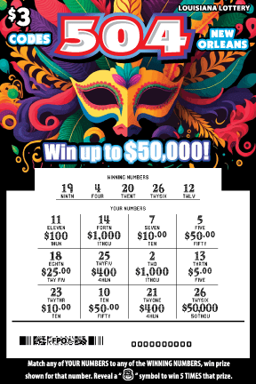 Every effort has been made to ensure that the preceding list of prize payouts, odds, and other game information provided on this page is correct. However, in the event of an error, the official files of the Louisiana Lottery shall be controlling. |