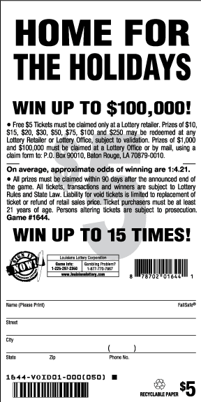 Every effort has been made to ensure that the preceding list of prize payouts, odds, and other game information provided on this page is correct. However, in the event of an error, the official files of the Louisiana Lottery shall be controlling. |