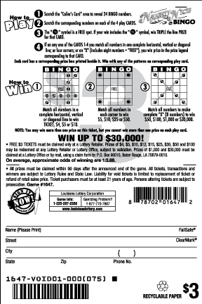Every effort has been made to ensure that the preceding list of prize payouts, odds, and other game information provided on this page is correct. However, in the event of an error, the official files of the Louisiana Lottery shall be controlling. |