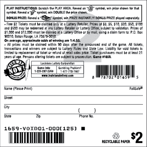 Every effort has been made to ensure that the preceding list of prize payouts, odds, and other game information provided on this page is correct. However, in the event of an error, the official files of the Louisiana Lottery shall be controlling. |