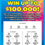 Match any of YOUR NUMBERS to any of the LUCKY NUMBERS, win the PRIZE shown for that number.