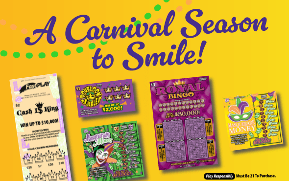 Celebrate Mardi Gras with the Louisiana Lottery during A Carnival Season to Smile in-store promotions at participating retailers statewide.