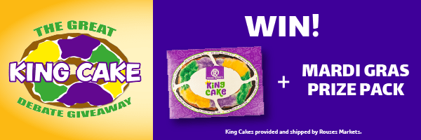 Louisiana residents who are at least 21 years of age are invited to enter the Louisiana Lottery’s Great King Cake Debate Giveaway for a chance to win a Mardi Gras Prize Package.